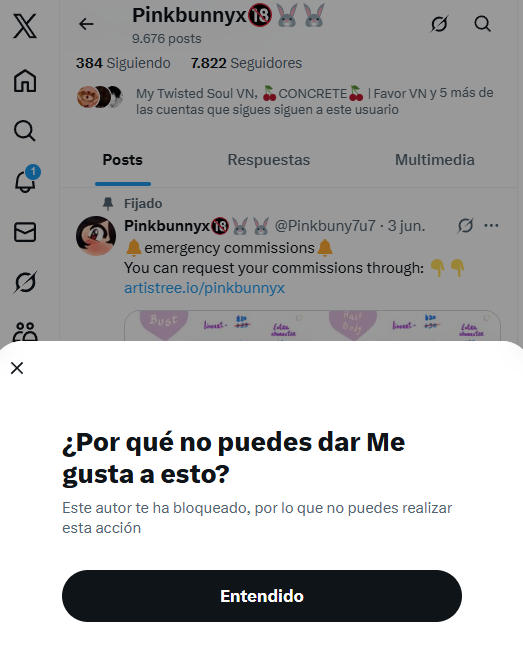 AHH me tienen bloqueada en Twitter :( quería ver las actualizaciones y dar me gusta a sus publicaciones